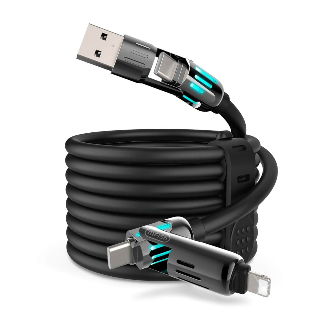 Cáp Sạc Thông Minh 4 trong 1 MFish 240W Chính Hãng – Có Đèn Led 2 Đầu Bọc Kim Loại Siêu Đẹp