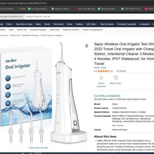 1 đánh giá cho Máy tăm nước không dây SejoyTB5011 Amazon 3 chế độ làm sạch – 4 đầu phun xoay 360°