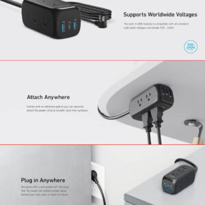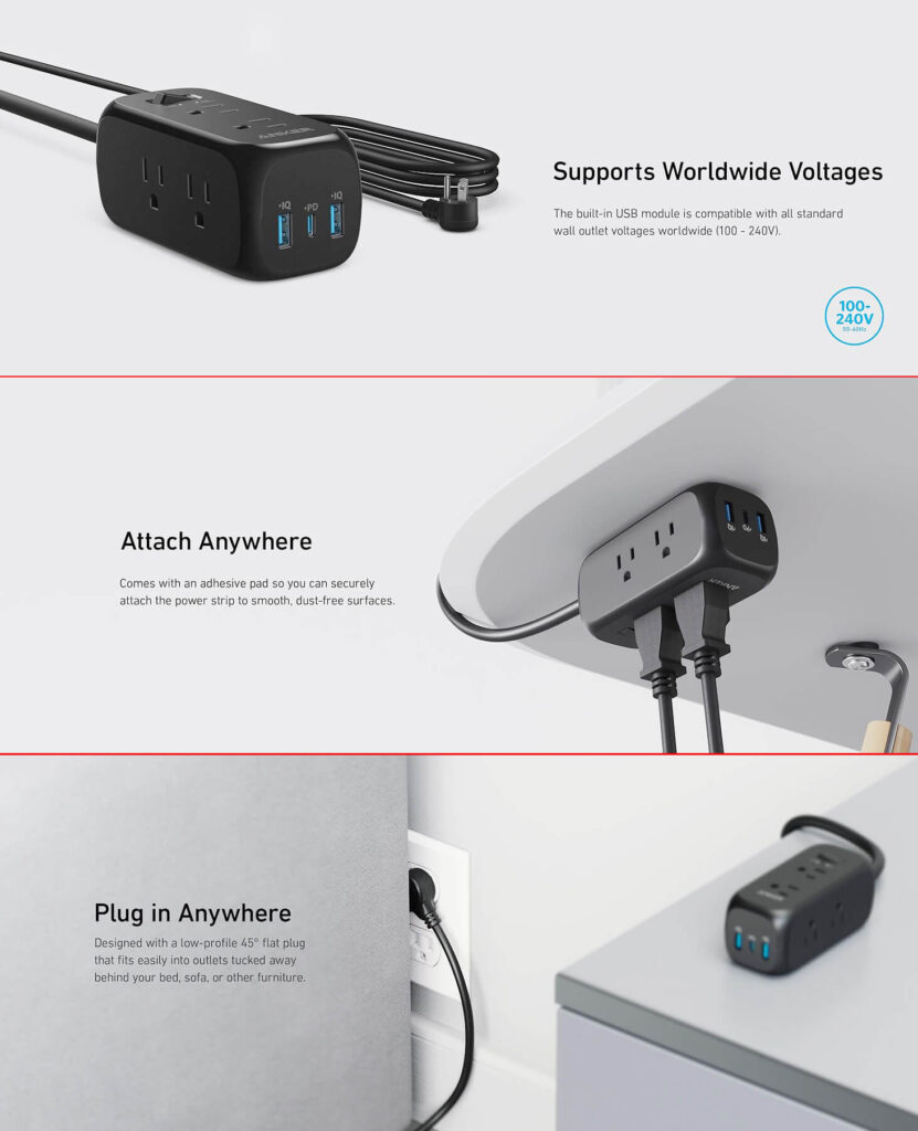 Ổ Cắm Điện Kiêm Sạc Anker 322 – 6 ổ cắm – 3 Cổng Sạc Nhanh 20W